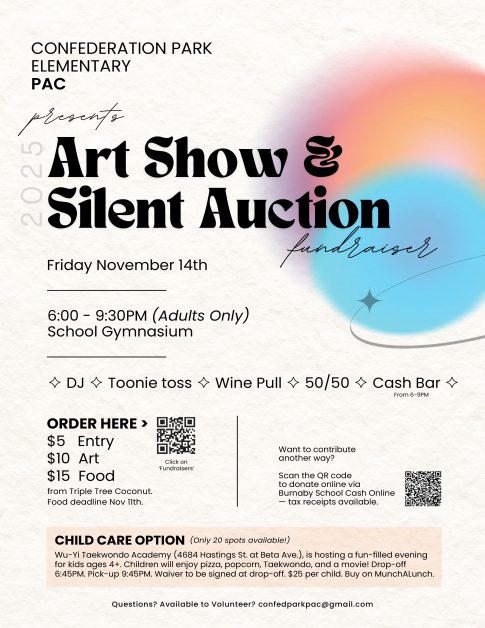Our most creative event of the year — the Confederation Park Elementary PAC Annual Art Show & Silent Auction Fundraiser — celebrates our talented students and the vibrant community that makes Confed so special.